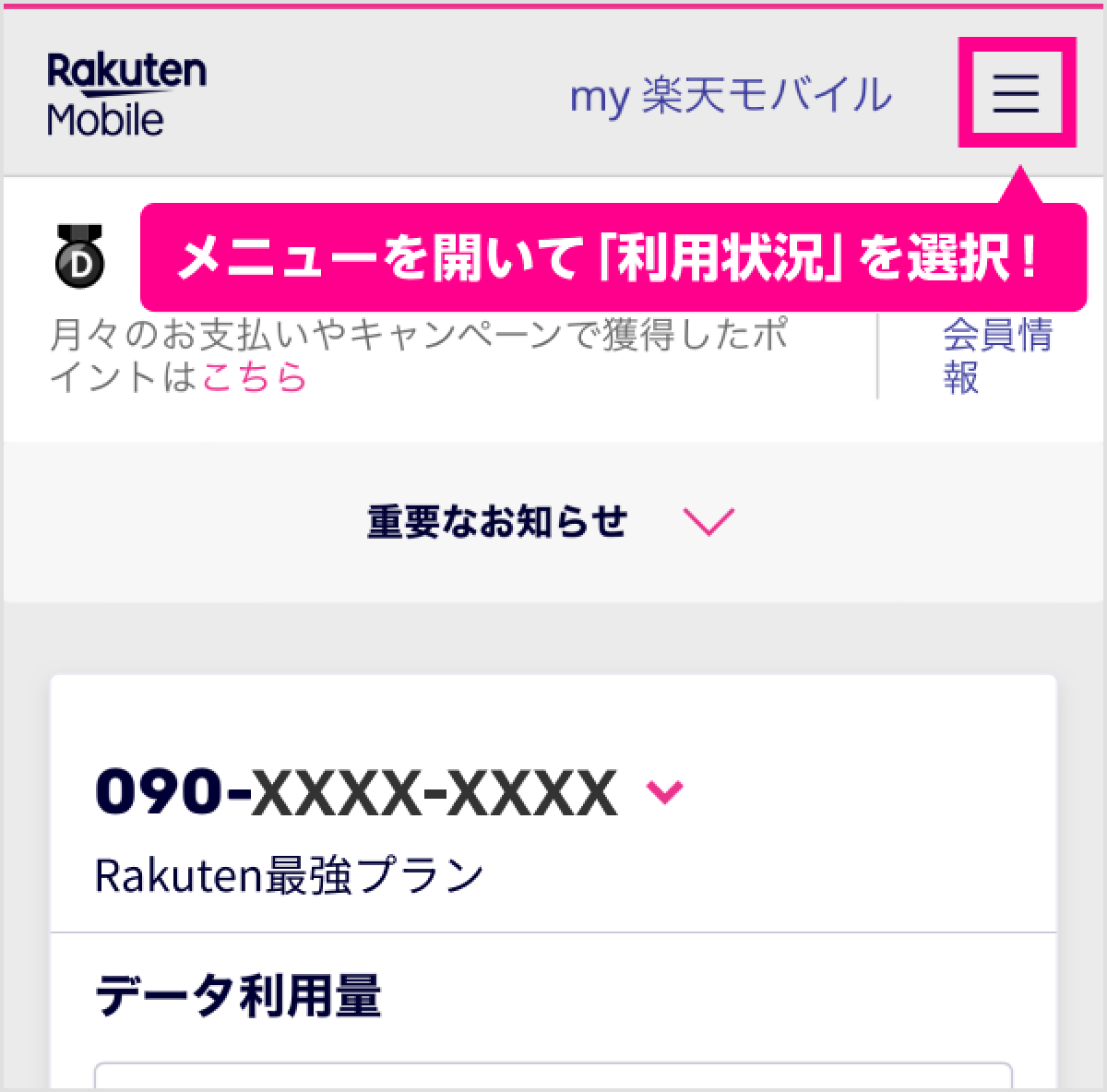 - 「Rakuten最強プラン(データタイプ)」を新規お申し込みした場合は対象外です