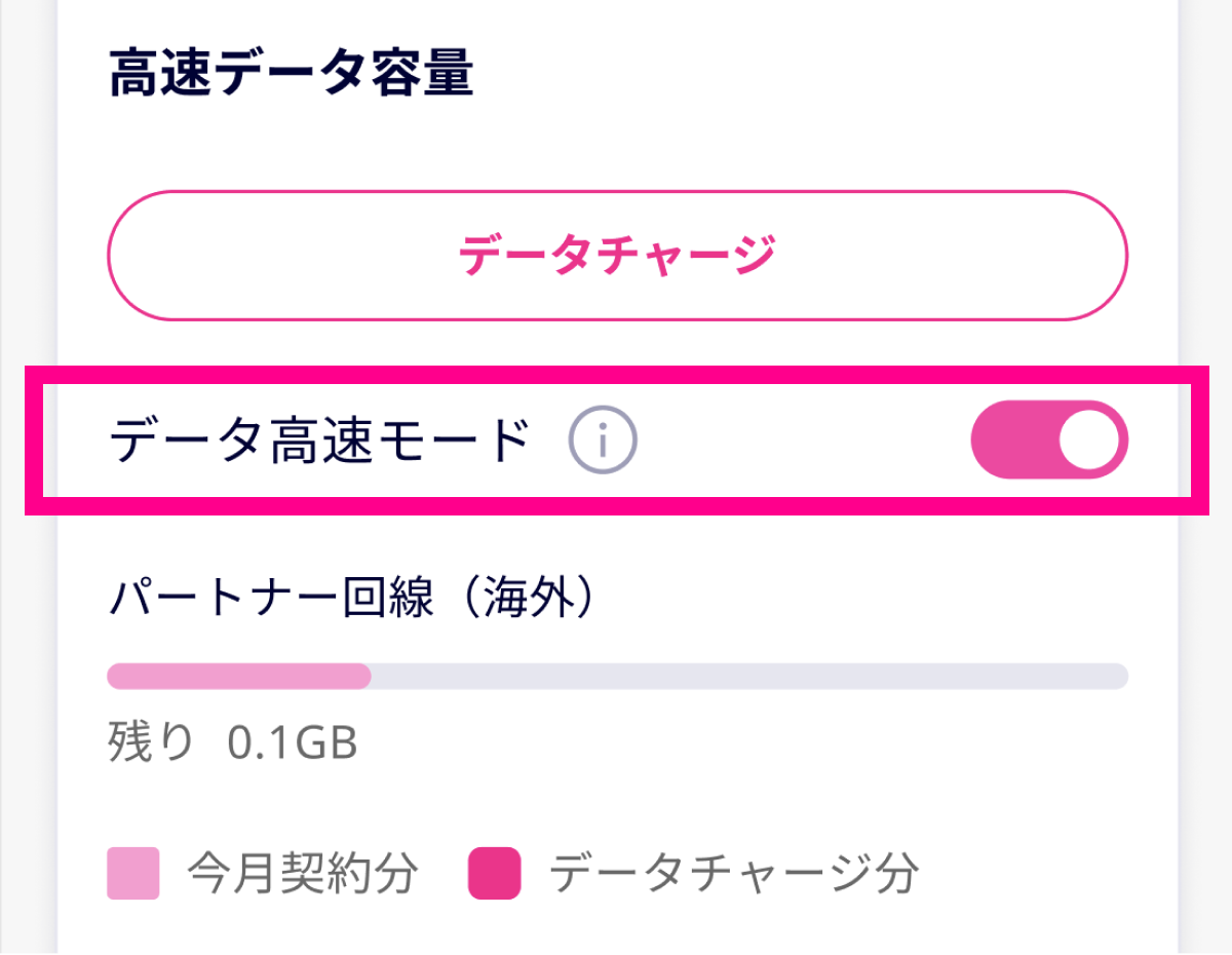 2.「高速データ容量」下部にある「データ高速モード」をタップし、ON/OFFを切り替える
